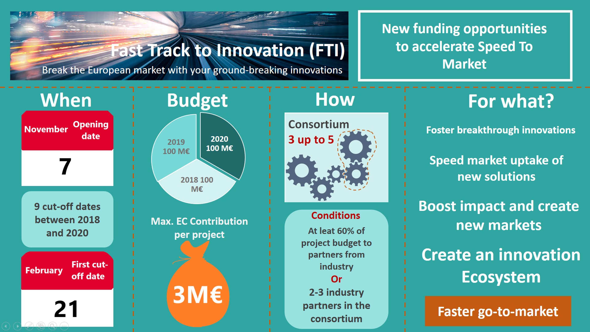 EIC – FTI – 2018 – 2020: Fast Track to Innovation (FTI) Κύριο